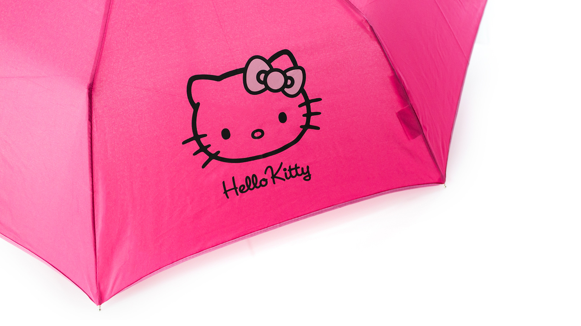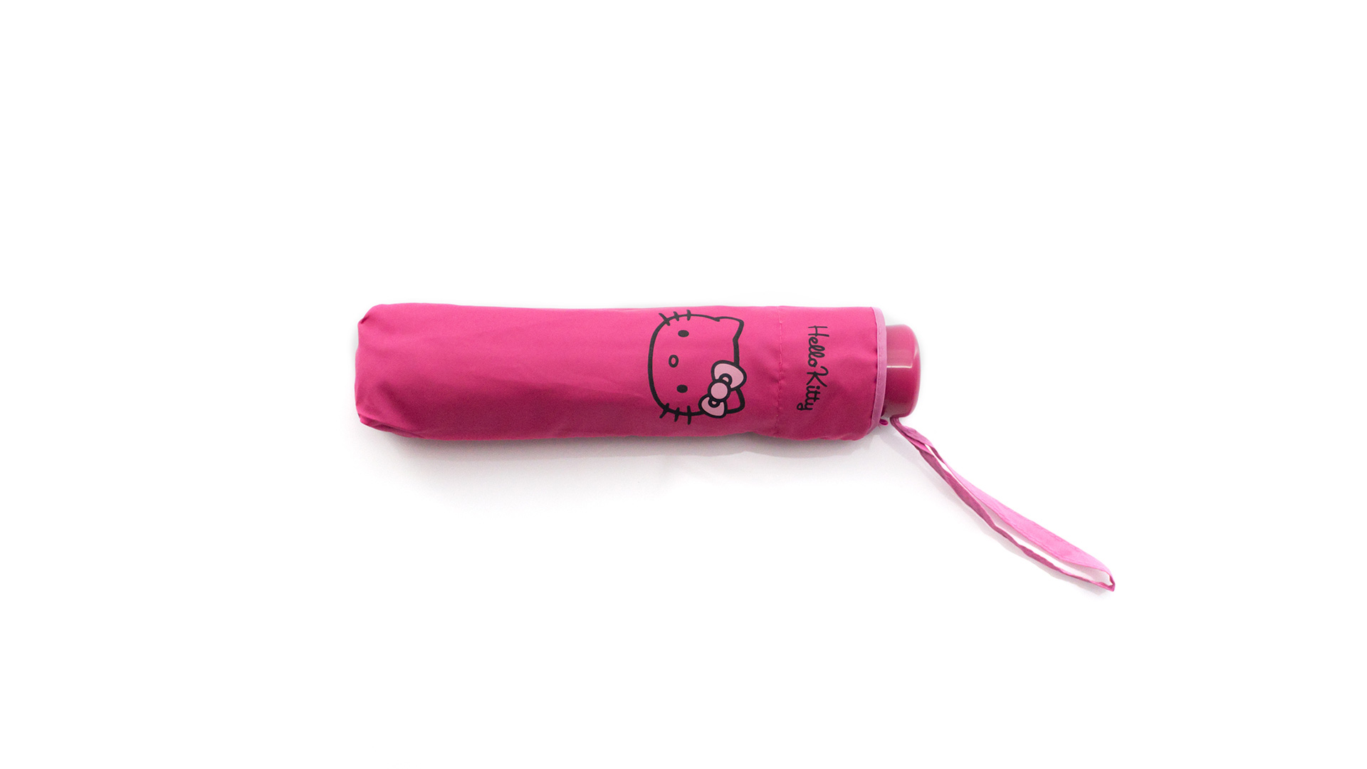 Guarda-Chuva Criança Hello Kitty. Bolsa incluída. 8 painéis com varas metálicas, fecho de velcro e fita de transporte em pega ergonómica. Dobrável tornando fácil a sua arrumação e transporte. Entregue numa bolsa a condizer.