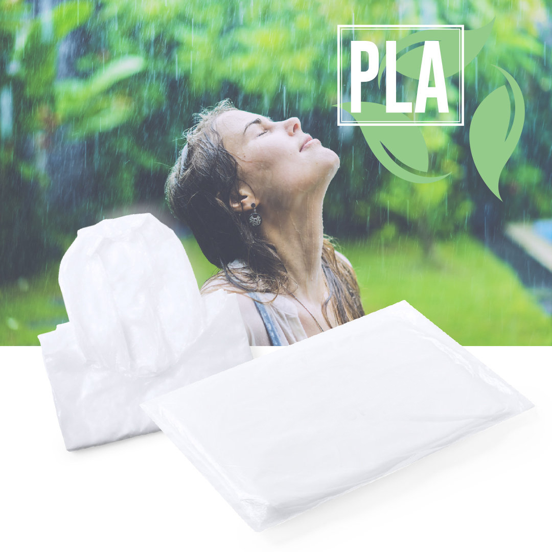 Poncho para adultos confeccionado com material PLA resistente – Ácido Polilático, que é obtido a partir de recursos 100% naturais como amido de milho ou cana-de-açúcar, podendo se tornar 100% biodegradável ao final de seu ciclo de vida Muito útil e prático. Mede 127 x 102 cm – tamanho único e é apresentado em bolsa individual de PLA com material compostável.